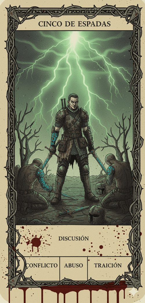 5 de EspadasDerrota, discusión, conflicto, abuso.