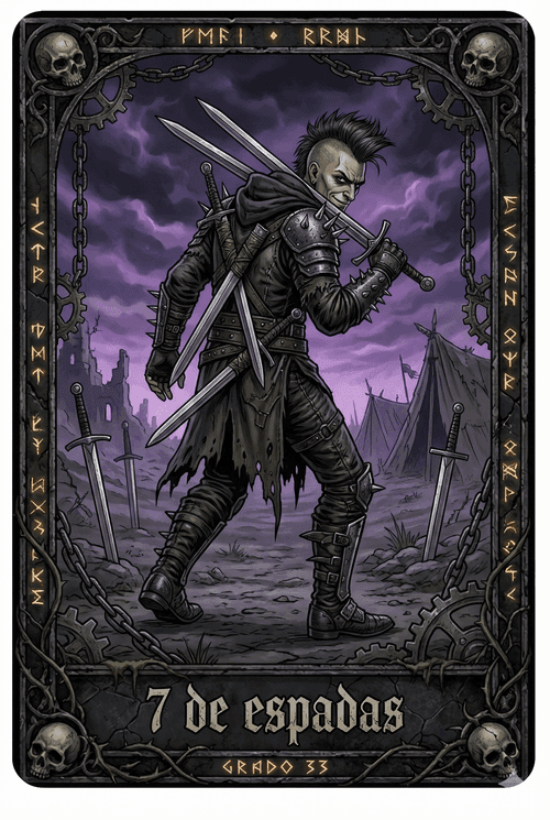 7 de EspadasEstrategia, engaño, secreto y discreción.