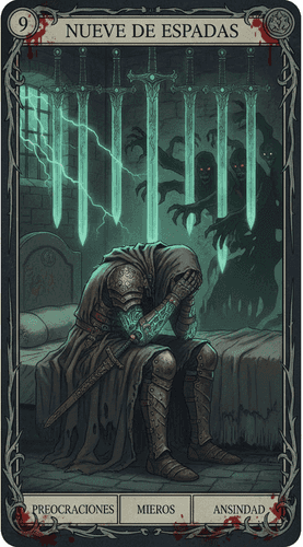9 de EspadasAnsiedad, preocupaciones, miedos.