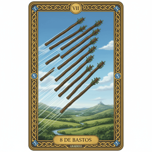 8 de BastosAcción, rapidez, movimiento.