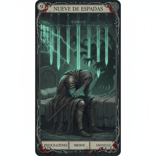 9 de EspadasPreocupaciones, miedos, ansiedad.